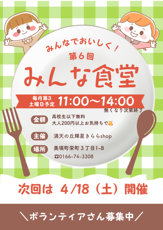 お疲れ様です😌 3月21日(土)開催🎉🎉🎉 みんな食堂について。。。 未就学、小学、中学、高校👀無